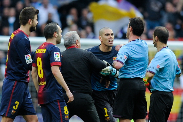 Barcelonan maalivahti Victor Valdes näki punaista lauantaina La Ligan ottelussa Real Madridia vastaan.