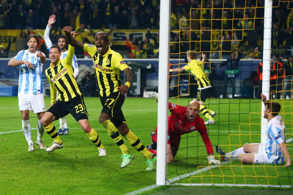 Malaga laittoi puolivälierävaiheessa saksalaiset lujille, ja vierasjoukkue johti kamppailua vielä maalein 2-1 ennen lisäaikaa. Lisäajalla Dortmund teki väkisin kaksi maalia, mikä veti päävalmentaja Jürgen Kloppin suupielet korviin. Kun ensimmäinen osa oli päättynyt maalittomaan, voitto riitti jatkopaikkaan.