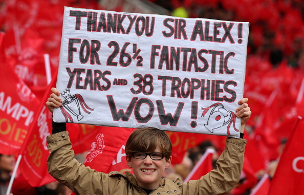 Manchester United pääsi nostelemaan Englannin Valioliigan mestaruuspokaalia sunnuntaina. Ottelu oli samalla manageri Alex Fergusonin viimeinen koitos Old Traffordilla.