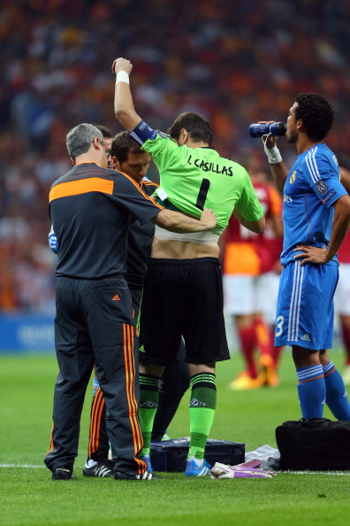 Ancelotti oli valinnut tolppien väliin Iker Casillasin. Maalivahdin harmiksi hän loukkaantui jo vartin kohdalla ja vaihtopenkki kutsui.
