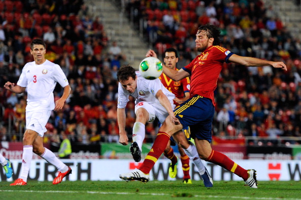 78. minuutilla Manchester Cityyn kesällä siirtynyt Alvaro Negredo tuplasi johdon. Valko-Venäjän Sergio Kornilenko vielä kavensi 89. minuutilla, mutta Espanja hallitsi tilanteen.