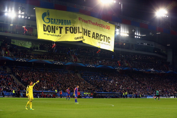 Lokakuussa Uefa sakotti sveitsiläistä Baselia 30 000 eurolla, kun Greenpeace onnistui levittämään jättilakanan stadionin katolta kesken Schalke-ottelun. Silloinkin protestin kohteena oli Gazprom.