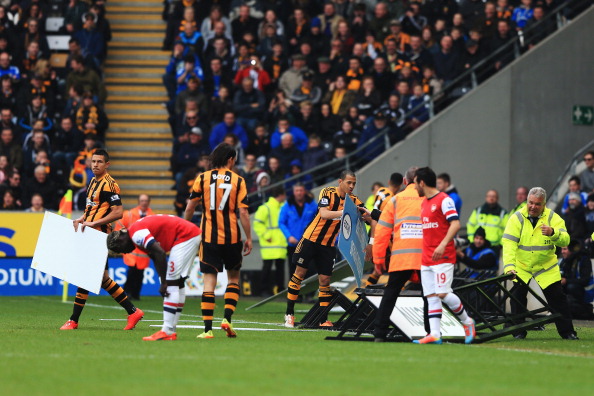 Sunnuntaina pelattava Hull Cityn ja Arsenalin välinen Valioliiga-ottelu jouduttiin keskeyttämään pariksi minuutiksi avausjaksolla erikoisesta syystä sunnuntaina.