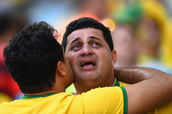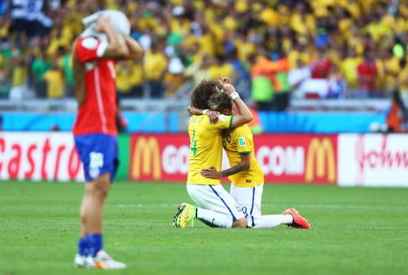 Klisee mutta tosi: toisen epäonni on toisen onni. Thiago Silva ja Neymar jäävät kentän pintaan huokaisemaan muiden brassien sännätessä juhlimaan.
