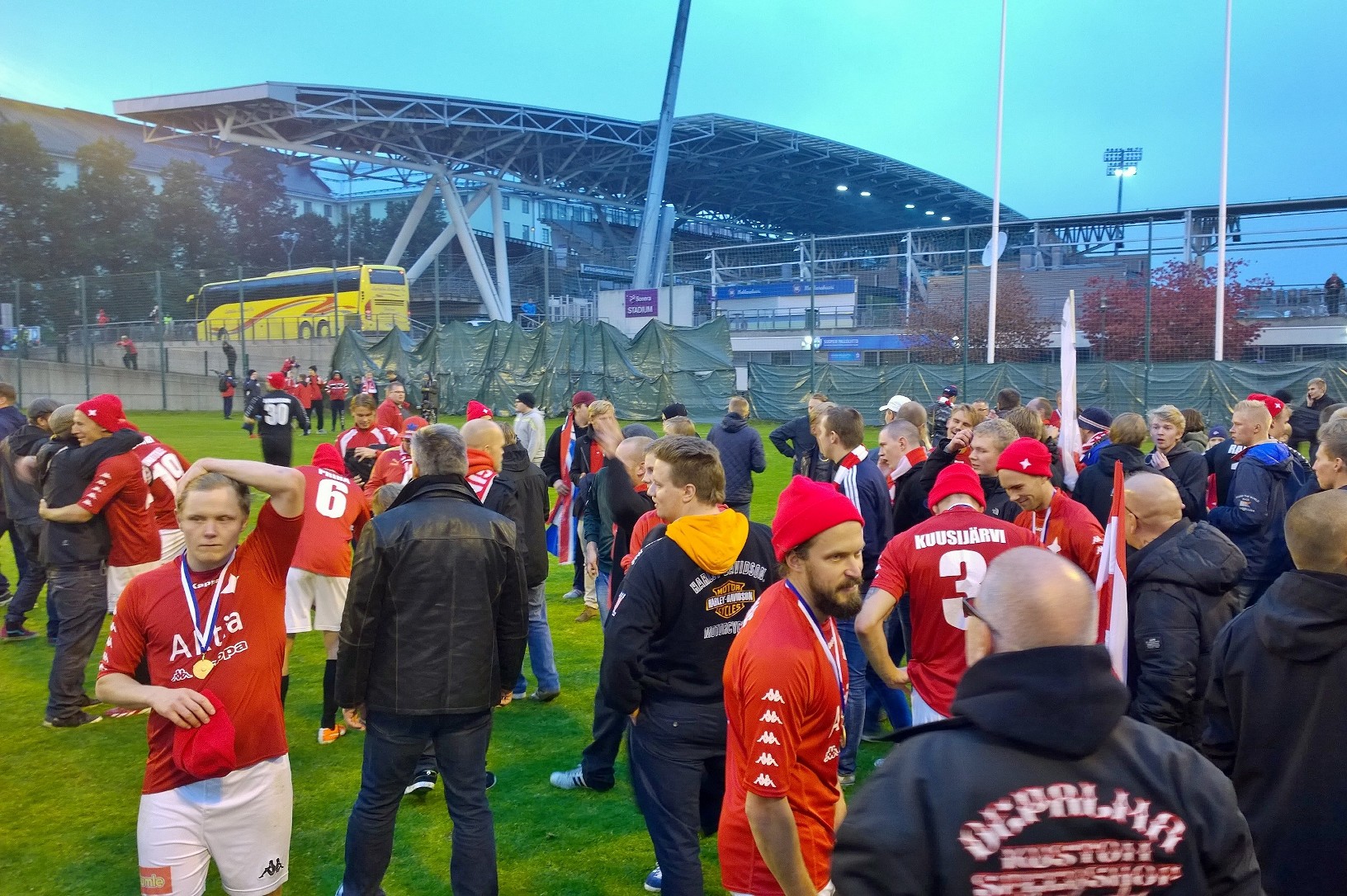 HIFK juhli lauantaina Helsingissä Töölön Pallokentällä häkellyttävän yllättäen tapahtunutta nousuaan Veikkausliigaan.