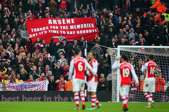 West Bromwichia vastaan katsomossa loisti muhkea lakana, jossa melko kiltein sanankääntein vaadittiin manageri Arsene Wengerin eroa.