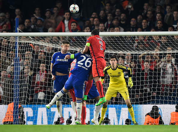 Chelsean luottopuolustaja John Terry puolusti tiukasti miestä PSG:n ratkaisevassa kulmapotkussa. Harmittavasti pihdeissä oli vain väärä pelaaja, oma topparipari Gary Cahill.