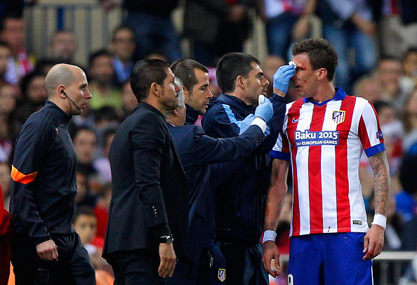 Mandzukic kovi ottelussa muutenkin kovia, sillä hän sai puolustaja Sergio Ramosin kyynerpäästä pahannäköisen tällin.