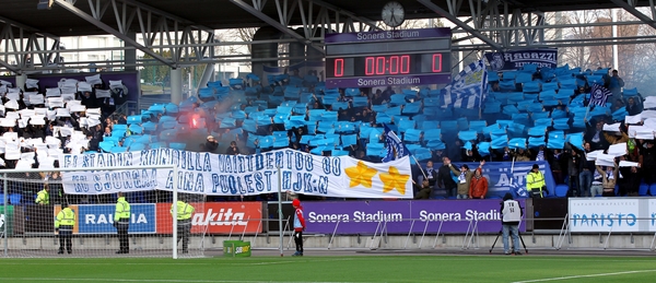 Kuvia HJK:n pelaajista sekä fanikatsomosta Stadin derbystä sivun ylälaidan galleriassa.