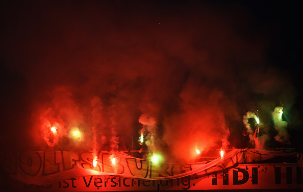 (Päivitys 14:31: Korjattu juttuun, että Hannover oli kotijoukkueena, ja soihduilla riehujat oliva vieraskatsojia.)
