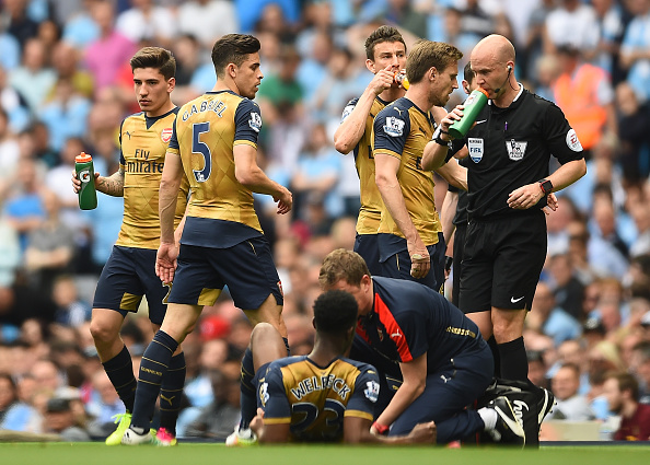 25-vuotias Arsenal-pelaaja loukkasi polvensa sunnuntain ottelussa Manchester Cityä vastaan.