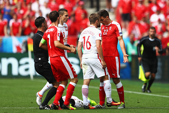 Ottelu eteni jatkoajalle, joka oli maaliton. Arsenalin hiljattain noin 30 miljoonalla punnalla hankkima Granit Xhaka epäonnistui Sveitsin toisena laukojana. Kaikki muut pelaajat onnistuivat, joten Puola eteni jatkoon.