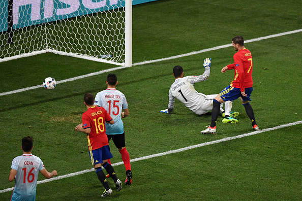Suurelle yleisölle hieman tuntemattomampi laitapelaaja Nolito vei Espanjan jo 2-0-johtoon 37. minuutilla, vain kolmisen minuutttia Moratan johtomaalista.