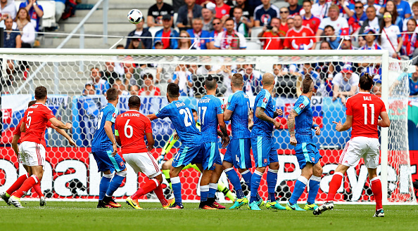 Wales johtaa historiansa ensimmäistä EM-turnausotteluaan 1-0-lukemin Slovakiaa vastaan avausjakson lopulla. Maalin iski joukkueen ykköstähti Gareth Bale hienolla vapaapotkulla, joka yllätti maalivahdin täydellisesti ovelan kierteensä vuoksi.