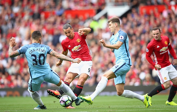 Zlatan Ibrahimovic ampui upean osuman paikallispelissä Cityä vastaan lauantaina.