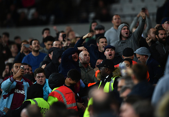 Sadat kannattajat osallistuivat kahinaan; pulloja, kolikoita ja tuoleja heiteltiin ja käsirysyiltä ei vältytty. Mellakkapoliisi yritti rauhoittaa tilannetta.