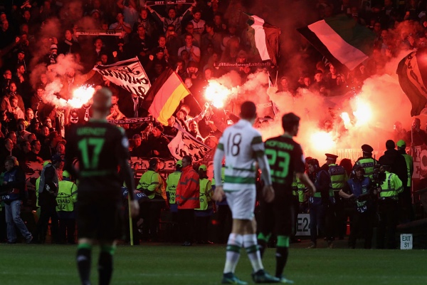 Kuvaaja sai taltioitua upeita kuvia Celtic Parkilta, jossa nähtiin myös saksalaiskannattajien soihdutuksia.. Katso lisää kuvia kannattajista painamalla yllä olevan kuvan oikeasta reunasta seuraavaan kuvaan.