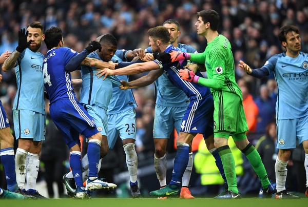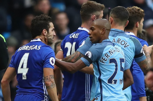 Ensin Nathaniel Chalobah antoi pienen muistutuksen Aguerolle, ettei tuollaista liukua sovi tehdä. Tönäisyn jälkeen torikokous oli valmis. Kuumimpana kävi Cityn keskikenttäpelaaja Fernandinho, joka kävi Cesc Fabregasin kurkkuun käsiksi, eikä meinannut rauhoittua millään