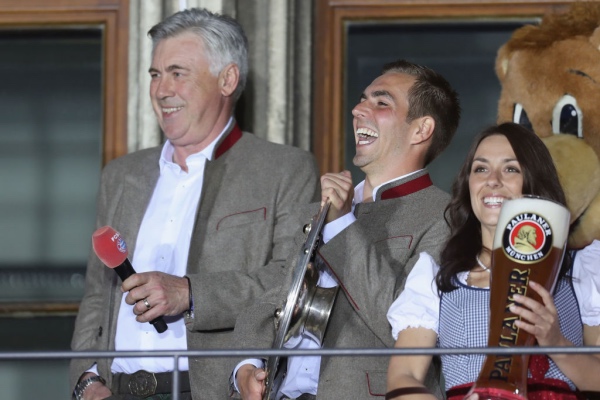 Bayernin joukkue juhlisti mestaruutta perinteikkäissä vaatteissa faniensa kanssa viime lauantaina. Italialaisvalmentaja Carlo Ancelotti otti heti ensimmäisellä kaudellaan Bayernin peräsimessä mestaruuden.