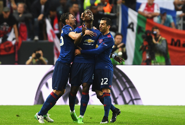 United meni hiukan onnekkaasti ottelussa johtoon, kun Marouane Fellaini syötti poikittain Paul Pogballe, joka tälläsi 16 rajalta pallon Ajaxin kolumbialaispuolustajan Davinson Sanchezin jalan kautta maaliin 18. minuutilla.