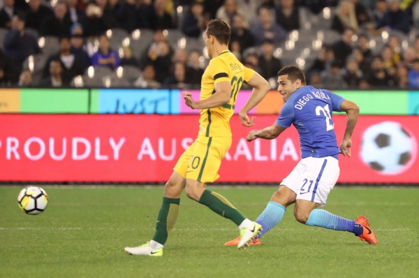 Diego Souza vei Brasilian johtoon, kun ottelua oli ehditty pelata vain kymmenen sekuntia. Johtomaalista varsin erikoisen teki se, ettei Brasilia edes aloittanut ottelua, vaan Australia antoi aloitussyötön.