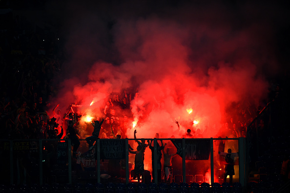 Oletettavasti Spartakin kannattaja ampui soihdun keskelle kenttää asti ja oli vain metreistä kiinni, että se olisi osunut ottelun erotuomariin Deniz Aytekiniin.