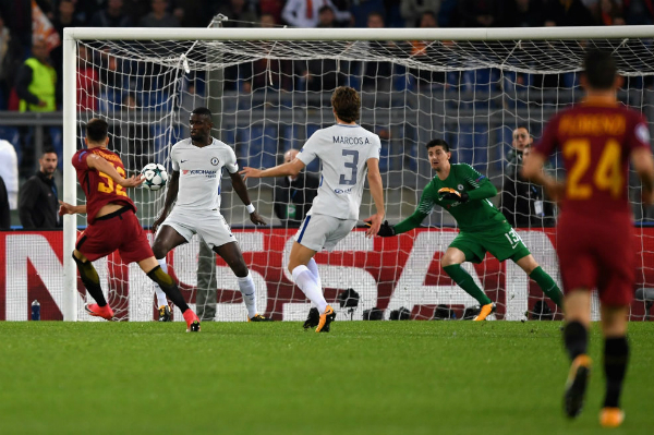 Kotijoukkue Roman laitapuolustaja Aleksandar Kolarov keskitti pallon Edin Dzekolle, joka pudotti sen Chelsean rangaistusalueen tuntumaan. Italialaislaituri Stephan El Shaarawy ennätti pelivälineelle ensimmäisenä ja pamautti sen oikean jalan ulkosyrjällään vastustamattomasti verkkoon.