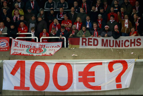 Müncheniläisjoukkueen kannattajilla oli myös Uefalle osoitettu banderolli, jossa luki: ”Onko ahneutenne nyt viimein tyydytetty?”