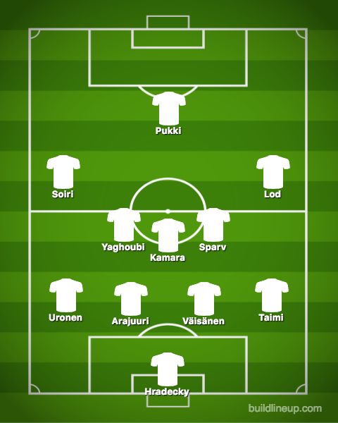 Kenen sitten pitäisi pelata Suomen keskikentällä? Mielestäni Kamaran näytöt ovat nyt sitä luokkaa, että hänen tulisi aloittaa keskikentän pohjalla. Myös Yaghoubi täyttäisi pallollisen pelaamisen edellytykset, joten keskikentän keskustassa voisi hyvin pelata kolme pelaajaa. Turkki-leirin näyttöjen perusteella keskikentän pelipaikat menisivät Sparville, Kamaralle ja Yaghoubille. Thomas Lam toisi vielä hyvän vaihtoehdon vaihtopenkin puolelta, mutta Rasmus Schüllerin osakkeet laskivat Makedonia-pelin esityksen perusteella.