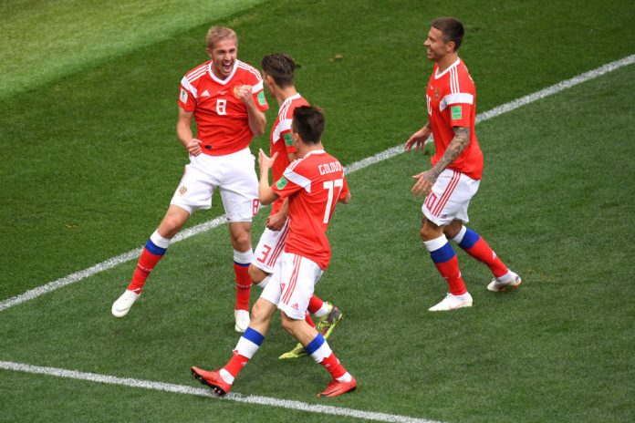 Siitä vastasi Venäjän Yuri Gazinsky komealla puskumaalillaan kulmapotkun jälkitilanteesta Saudi-Arabian verkkoon. Maali oli keskikenttäpelaajan maajoukkueuran ensimmäinen.