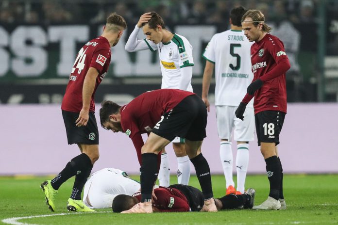 Saksan maajoukkueen ja Borussia Mönchengladbachin toppari Matthias Ginter sai sunnuntain bundesliigaottelussa ikävän kasvovamman. Hannoverin Noah Sarenren Bazee juoksi täysin hallitsemattomasti suoraan päin Ginteriä.
