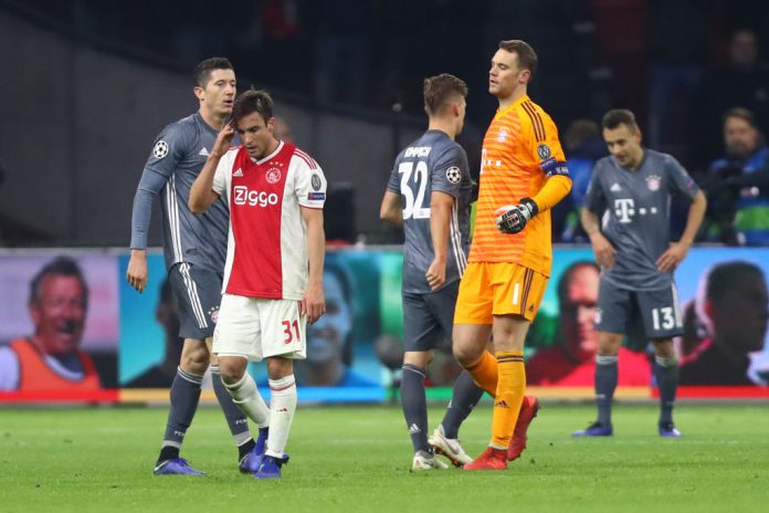 Amsterdam Arenalla nähtiin hurja taistelulohkovoitosta, kun Ajax sai vieraakseen saksalaisen Bayern Münchenin. Tapahtumarikas kuuden maalin maali-iloittelu päättyi 3-3-tasatulokseen.