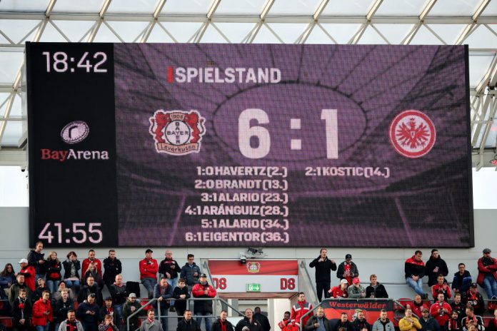 Bayer Leverkusen ei ollut sentään yhtä armoton, vaan ottelun toisella puoliajalla ei nähty ainuttakaan maalia. Avausjakson murskalukemat 6-1 jäivät siis koko ottelun loppunumeroiksi.
