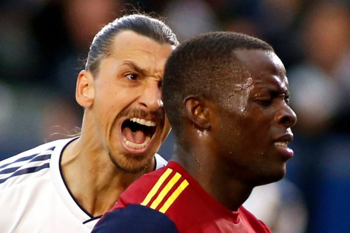 − Painu kotiin, senkin pieni narttu, Zlatan huutaa Los Angeles FC:n valmentajalle tämän nostellessa kyynärpäätään ruotsalaishyökkääjää kohti.