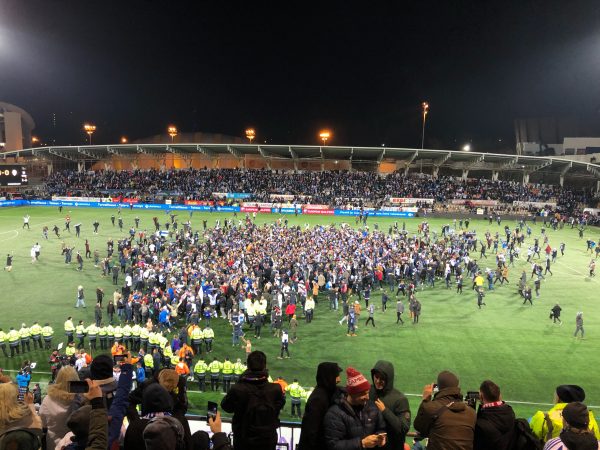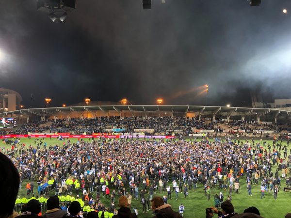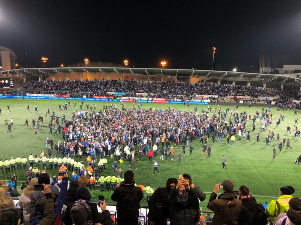Yllä olevasta galleriasta voit katsoa kuvia kentälle rynnänneistä faneista.