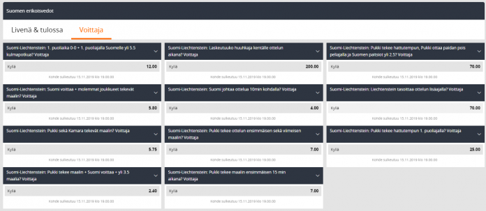 Suomi – Liechtenstein / Erikoisvedot