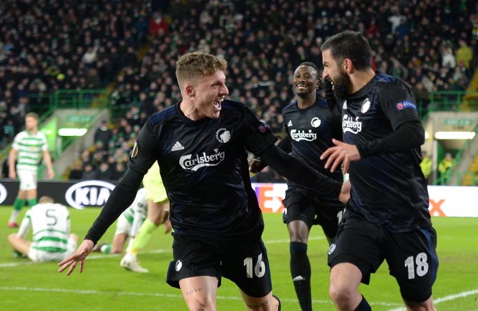 Santos teki joukkueensa ensimmäisen maalin, kun FC Kööpenhamina nujersi Skotlannin hallitsevan mestarin Celticin 3-1-lukemin Eurooppa-liigan ensimmäisellä pudotuspelikierroksella Celtic Parkilla.