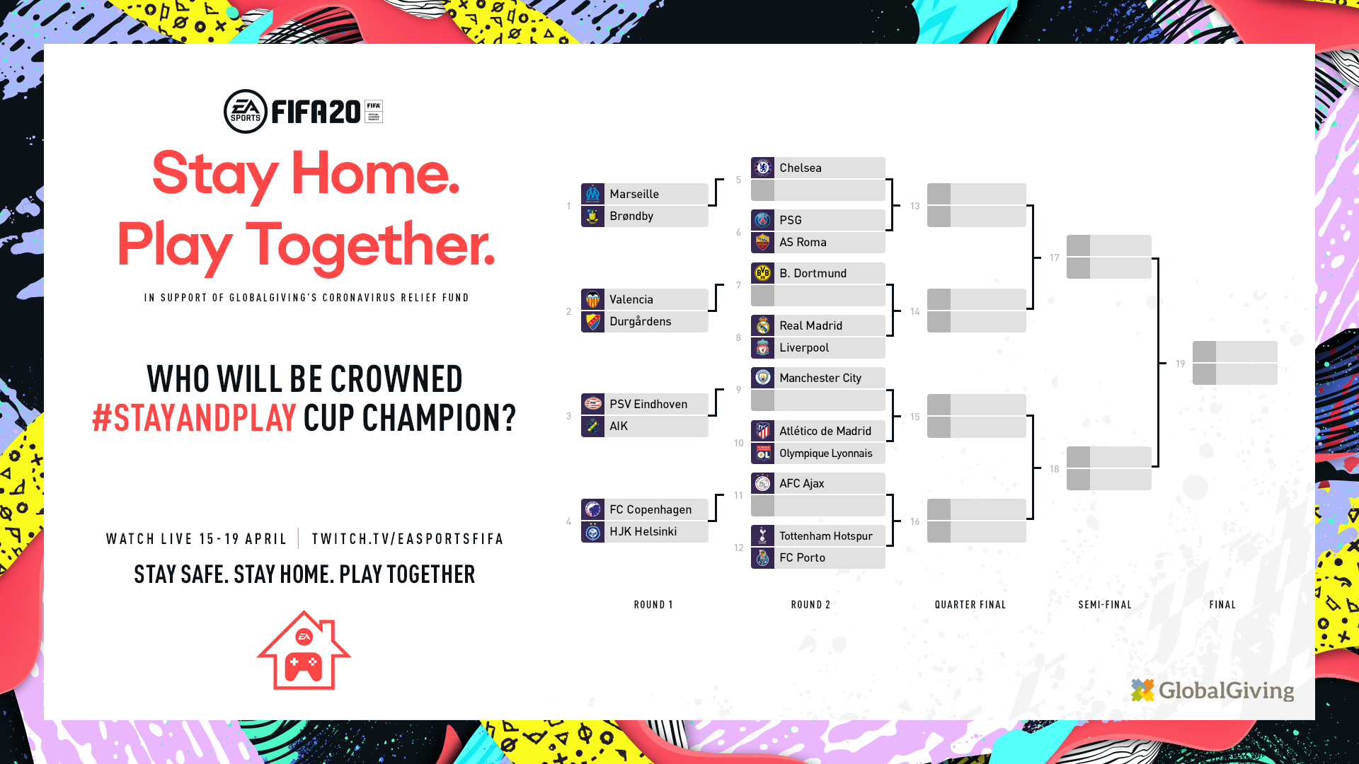 Turnausta voi seurata EA:n verkkosivuilla, Twitch-kanavalla ja YouTubessa.