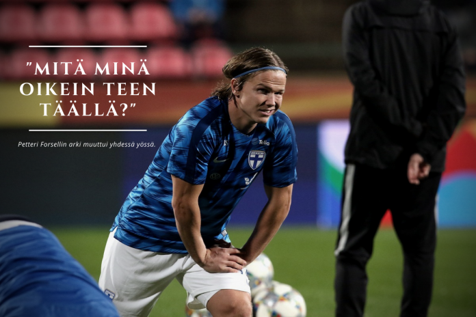 Forsell vastaa puhelimeensa kotonaan Kielcessä puoliltapäivin. Heti aamusta ei sovi häiritä jalkapallotähteä, jonka arki on muuttunut merkittävästi viime viikkojen aikana. Aamu on nimittäin Forsellin päivärytmissä omistettu unelle. Syynä on yölliset juoksentelut kaupungilla, eli tuttavallisemmin ammattiurheilijan bensiini: harjoitteleminen.