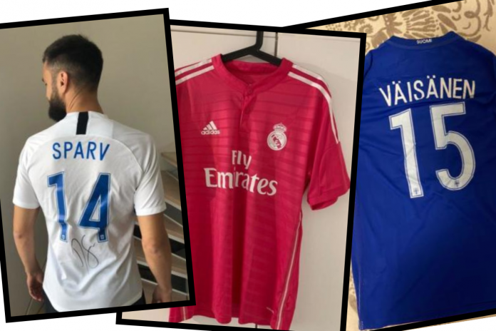 Huudettavana on todellisia helmiä jalkapallon puolelta, kuten Eero Markkasen käyttämä (game worn) Real Madrid Castilla -pelipaita nimikirjoituksella. Markkanen kuului Real Madridin organisaatioon vuosina 2014-15, vaikka debyytti edustusjoukkueen puolella jäikin kokematta.