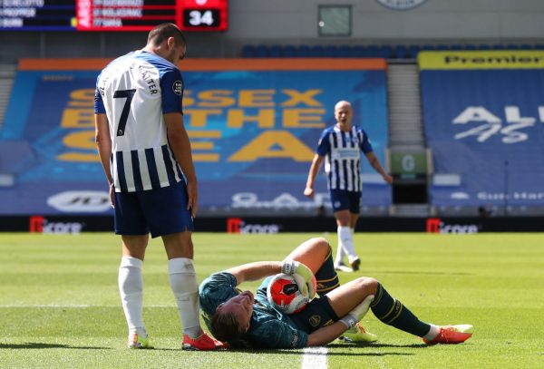 Kaikki sai alkunsa tilanteesta ensimmäisellä jaksolla, kun Arsenalin maalivahti Bernd Leno loukkaantui pallontavoittelutilanteessa Brightonin hyökkääjää Neal Maupayta vastaan. Leno oli pallolla selvästi ensimmäisenä, mutta Maupay hyppäsi vielä tilanteeseen ja tuuppasi häntä kyljen puolelta. Saksalaisvahti kaatui huonossa tasapainossa, loukkasi polvensa ja jäi makaamaan maahaan tuskaisena.