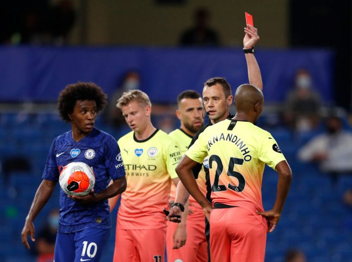Ottelu ratkesi noin vartti ennen päätösvihellystä. Manchester Cityn Fernandinho pelasi boksin sisällä palloa kädellään, ja peliväline vietiin pilkulle. Fernandinho sen sijaan vietiin punaisen kortin avustamana kohti pukukoppia. Willian iski pilkulta varmasti Chelsean voittomaalin.