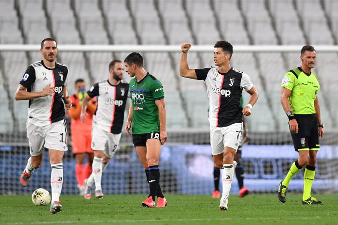 Ronaldo laittoi puntit tasan Duvan Zapatan aikaisen avausosuman jälkeen pelin 55. minuutilla, kun Paulo Dybalan keskitys jäi Marten de Roonin kyynärpäähän rangaistuspotkun merkiksi.