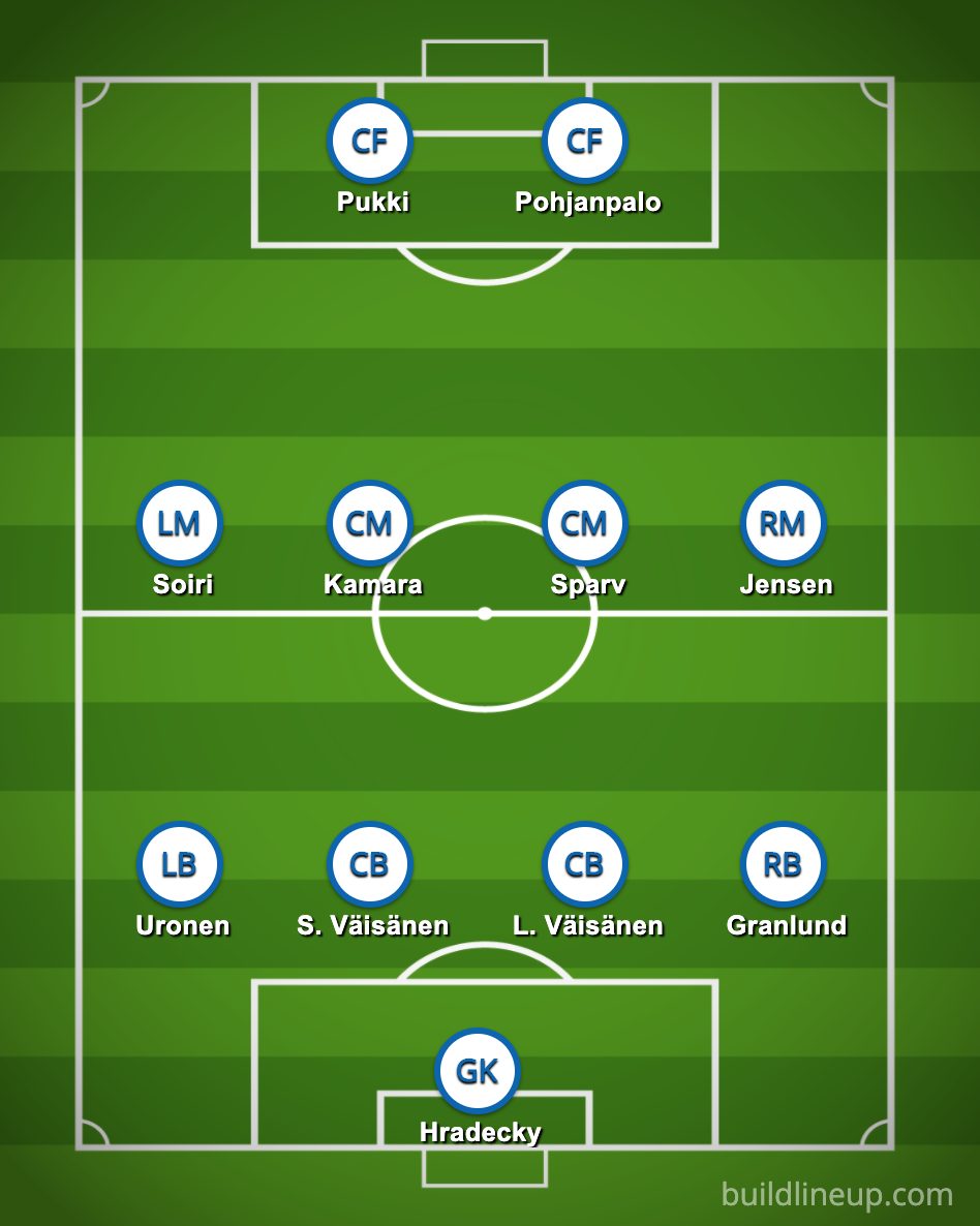 Niinpä avauksessa nähtäneen tiettyjä muutoksia. Etenkin puolustuslinja on suhteellisen iso kysymysmerkki, koska vakioavaajista kolme on sivussa. Jännityksellä kannattaa seurata, tekevätkö Santeri Hostikka tai Ilmari Niskanen A-maajoukkuedebyyttinsä. Niko Hämäläiselle kentälle pääsy merkitsisi ensimmäistä kilpailullista A-maaottelua, mikä samalla lukitsisi hänen edustusoikeutensa Suomen paitaan lopullisesti.
