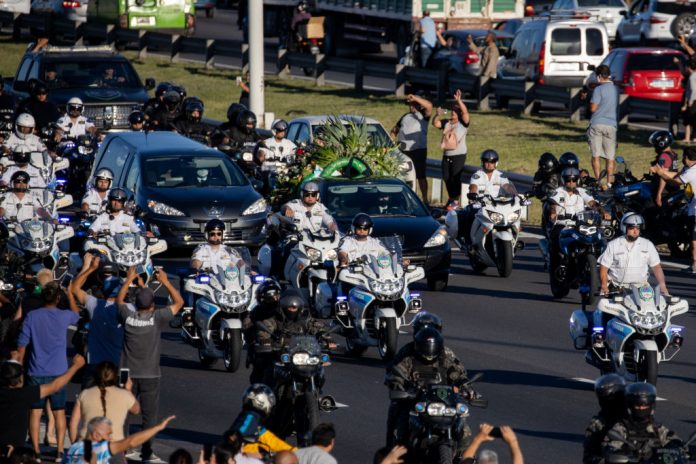 Tilaisuudessa oli paikalla vain Maradonan perheenjäseniä ja lähimpiä ystäviä. Matkalla ruumiinvalvojaisista hautausmaalle Maradonaa kuitenkin saattelivat lukuisat argentiinalaiset.