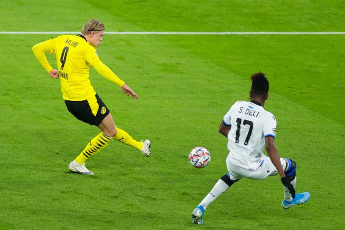 20-vuotias norjalaishyökkääjä viimeisteli kaksi osumaa, kun Borussia Dortmund kaatoi Club Bruggen Mestarien liigan lohkovaiheen ottelussa maalein 3-0.