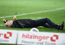 Argentiinalaispuolustaja tönäisi vastustajajoukkue Freiburgin valmentajan Christian Streichin nurin joukkueiden...