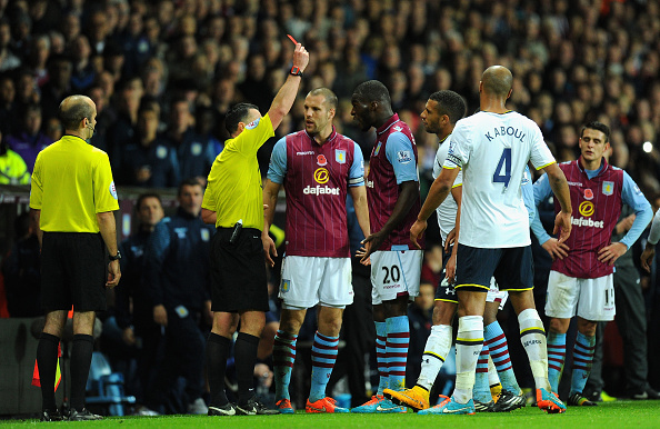 Ottelun käänsi lontoolaisvieraille Villa-hyökkääjän Christian Benteken suora punainen kortti 65. minuutilla...