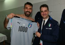 Juventuksen 39-vuotias italialaismaalivahti Gianluigi Buffon pelasi perjantaina uransa 1000. pelinsä ammattilaisena, kun Italia kaatoi Albanian 2-0 MM-karsinnoissa.
