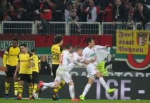 Bundesliigan sarjakärki Borussia Dortmundin alkuvuoden hankaluudet jatkuivat perjantaina. Putoamista vastaan taisteleva Augsburg ylsi kotonaan yllätyspaukkuun lyötyään suurseuran 2-1-numeroin.